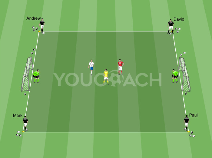 1v1 - Simplified situation useful for training 1 v 1 with finishing in the mini goals -