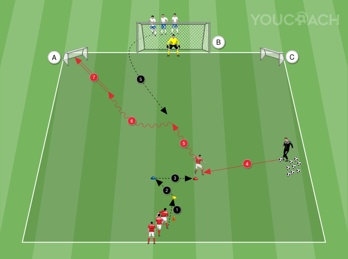 1v1 - Cognitive drill to train mental focus and speed with a 1 v 1 situation for finishing -