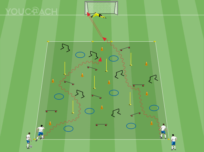 Running with the ball - Slalom driving the ball and precision shot at maximum speed and quickness -