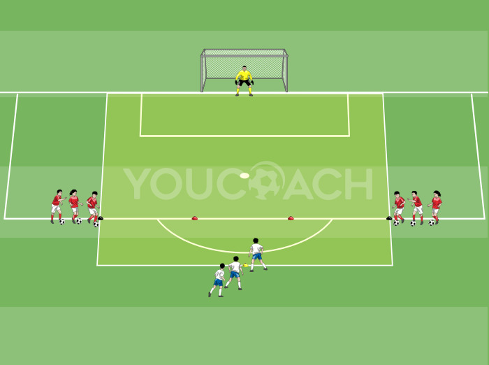 Doppio rettangolo in situazione di 3 + portiere contro 2 e situazione di 1 contro 1