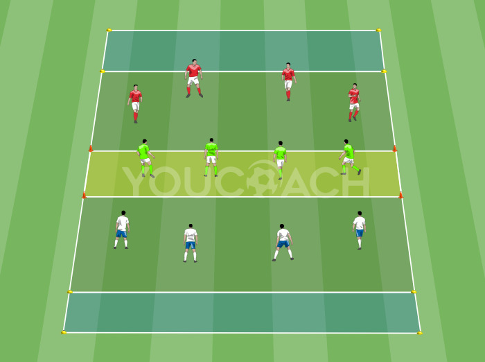 Possesso palla - Partita a tema 6 contro 6 o 7 contro 7 con manovra sviluppata in ampiezza per la ricerca della profondità -