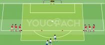 Esercitazione situazionale per allenare la ricerca del raddoppio verticale da parte dei centrocampisti |
