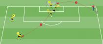 - Il portiere P1 scatta in avanti fino ad arrivare tra i coni 1 e 2
