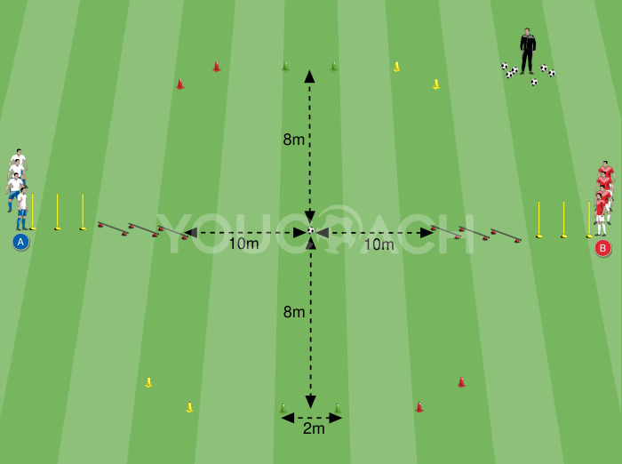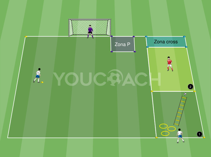 1 contro 1 - Circuito coordinativo seguito da situazione di 1 contro 1 con cross dal fondo per la finalizzazione di un compagno