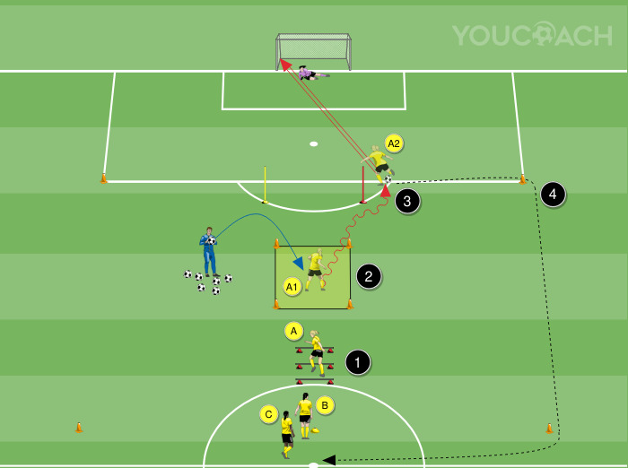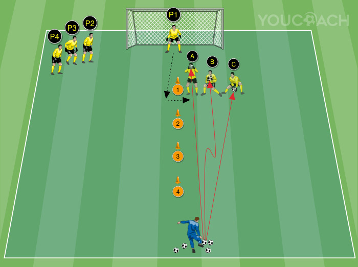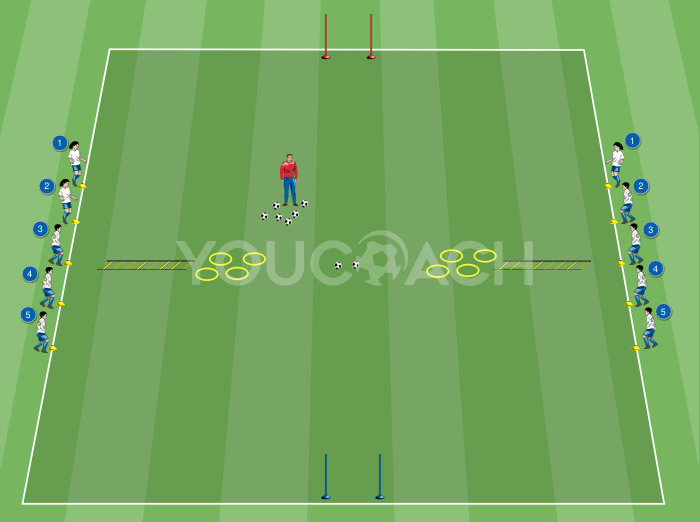 Tiro in porta - Esercizio tecnico-coordinativo che allena la rapidità, il controllo orientato e il tiro in porta -