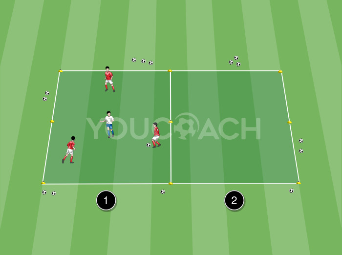 Guida della palla - Circuito tecnico-motorio per la conduzione e dominio palla con situazione finale di 2 contro 2 -