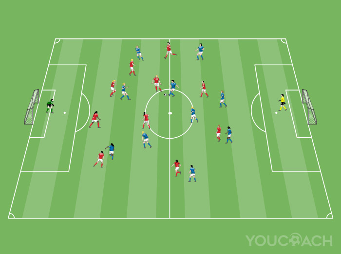 5 contro 5 in due metà campo (3 vs 2 + 2 vs 3)