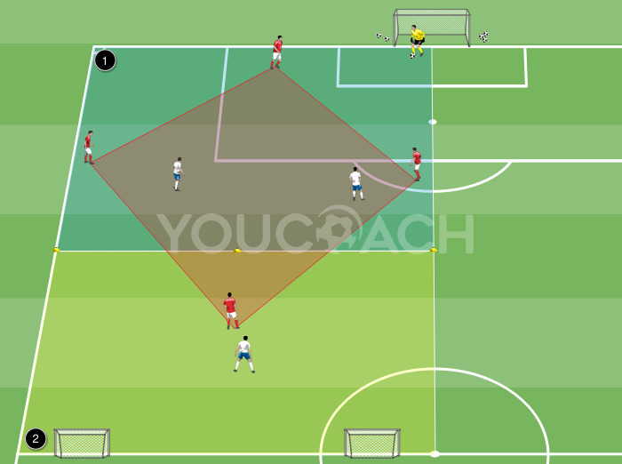 Double rectangle in a 3 + goalkeeper v 2 situation and a 1 v 1 situation